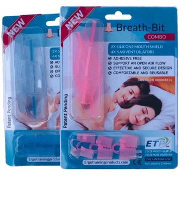 Mouth breathing is not advised by many doctors. Millions of people turned already adhesive plasters to stop "Mouth-Breathing" the main cause of Snoring, poor immunity, and even Bad breath. But adhesive tape is uncomfortable and can be better. The new "Adhesive Free" Soft flexible Silicone BreathBit is a mouth-shield placed between lips and gums, and with the free-floating NasiVent nose dilator, you will receive a life-long-lasting solution against Mouth breathing. WASH&WEAR. The BreathBit Combo was developed by Anton Bende ME., an award-winning Medical Ergonomist specialist in human respiration for over 14+ Years. We also have the transparent sport version, for training and Gym-workout, to improve your condition while workout.
