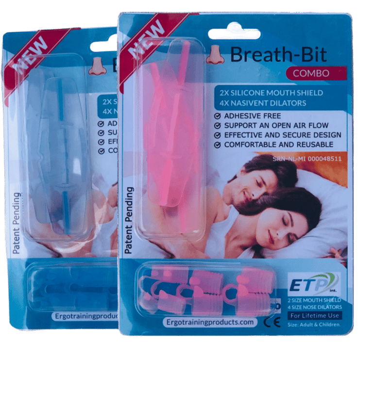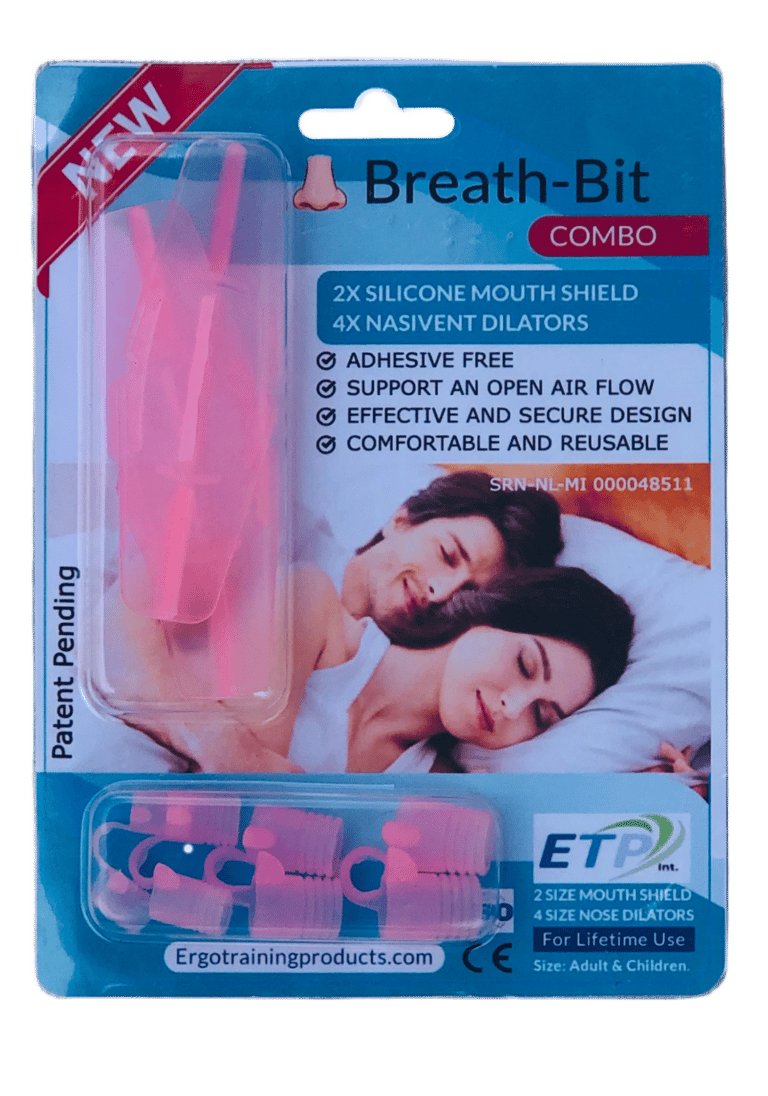 Mouth breathing is not advised by many doctors. Millions of people turned already adhesive plasters to stop "Mouth-Breathing" the main cause of Snoring, poor immunity, and even Bad breath. But adhesive tape is uncomfortable and can be better. The new "Adhesive Free" Soft flexible Silicone BreathBit is a mouth-shield placed between lips and gums, and with the free-floating NasiVent nose dilator, you will receive a life-long-lasting solution against Mouth breathing. WASH&WEAR. The BreathBit Combo was developed by Anton Bende ME., an award-winning Medical Ergonomist specialist in human respiration for over 14+ Years. We also have the transparent sport version, for training and Gym-workout, to improve your condition while workout.